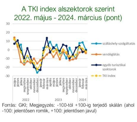 Márciusban a turizmusban működő cégek helyzetüket stagnálás közelinek érzékelték (az index értéke -2 pont volt a -100 és +100 közötti skálán értelmezve). A TKI index közel megegyezett a GKI EU számára végzett konjunktúra-kutatásában mért szolgáltatási szektor konjunktúraindexével, meghaladta ugyanakkor nemzetgazdasági átlagot képviselő GKI üzleti bizalmi indexet (-5 pont). Emellett magasabb volt az ipar (-6 pont), jóval magasabb az építőipar (-20 pont) és a kereskedelem (-13 pont) indexénél.