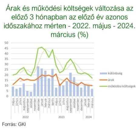 Márciusban a turisztikai cégek 58%-a szolgáltatási árainak növekedéséről számolt be az elmúlt 3 hónapra (az előző év azonos időszakához mérten), 36%-uk nem változtatott az árakon, míg csökkenést 6% jelzett. Az áremelkedés előző év azonos időszakához mért átlaga február után márciusban is 10%-os volt. A működési költségek emelkedése (+17%) és a szolgáltatási árak növekedése közötti olló márciusban tovább zárult (legutóbb 2022 októberében volt ennél kisebb a különbség).