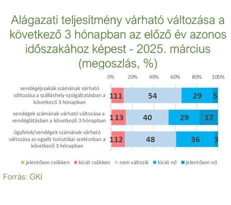 A következő három hónapban az előző év azonos időszakához képest a szállásadók 34%-a növekedést, míg 12%-uk visszaesést vár a vendégéjszakák számában. A vendéglátásban működők közül 46% vár vendégforgalom növekedést az előző év azonos időszakához képest, 14%-uk pedig visszaesést vetít előre. Az egyéb turisztikai szektorban működők 39%-a vár ügyfélforgalom növekedést az előző év azonos időszakához képest, míg visszaesést 13% prognosztizál.