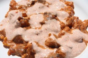 Közben elkészítjük a nokedlit. A liszthez csipetnyi sót, és három szép sárga tojást keverünk. Lehetőség szerint víz hozzáadása nélkül készítsük, úgy a legfinomabb. Nem kell simára kidolgozni, ha összeállt a massza, már félre is tehetjük pihenni.