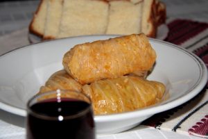 A savanyú káposzta vastagabb ereit kivágjuk, és betöltjük a szalonnás, fűszerezett kukoricadarával. Egy evőkanálnyi tölteléket teszünk mindegyik levélbe, azok két oldalát felhajtjuk, majd feltekerjük. A végeit alaposan benyomkodjuk, hogy ne folyjon ki a töltelék főzés közben.