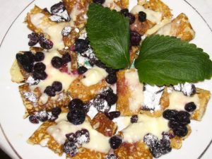 Citromos palacsinta mézes tejföllel és vörös áfonyával