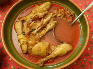 Hozzávalók: 2 kg csirkehús (láb, comb, hát, nyak), 4 fej vöröshagyma, 10 dkg sertészsír, só, 3 teáskanál őrölt fűszerpaprika, 1 teáskanál őrölt feketebors, 2 teáskanál paprika-és paradicsomkrém, 1 tv-paprika, 1-2 szelet csípős paprika, 1 hámozott paradicsom, 5 szem burgonya, 2 zellerlevél.