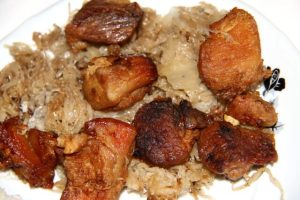 Disznótoros fokhagymás hús káposztával