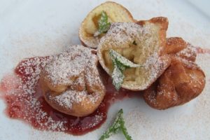 Szűrőkanállal kiszedjük, lecsepegtetjük róluk az olajat. Tálalásnál ízlés szerint megszórhatjuk fahéjas porcukorral. Eperlekvárral a legfinomabb.