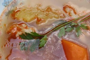 Hozzávalók: 80 dkg füstölt csülök, 1 nagy petrezselyem, 4 sárgarépa, 1 zeller, 3 krumpli, 1 vöröshagyma, 1 evőkanál őrölt paprika, só, 1 csokor zellerzöld, 1 csokor petrezselyemzöld.