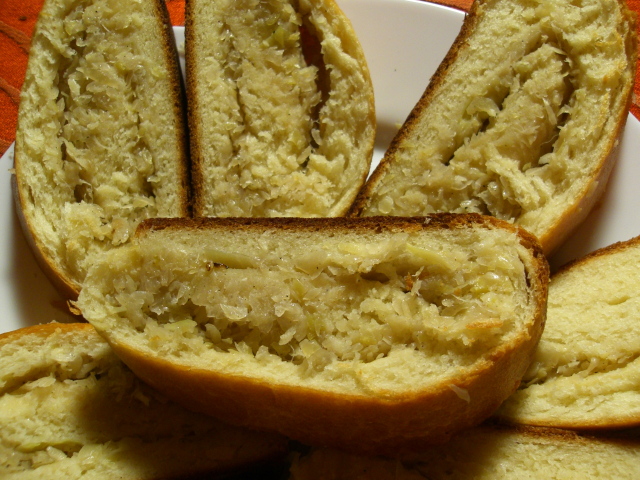 Döglesztett salátát készítünk hozzá. Ehhez a salátát leveleire szedjük, majd átmossuk. A fokhagymát lereszeljük. Egy kisebb lábasba olajat öntünk, beleborítjuk a fokhagymát, és megsózzuk. Állandóan kevergetve megsütjük. Vigyázzunk, nehogy megégjen, mert akkor keserű lesz. Belekeverjük a cukrot, felöntjük vízzel, és felforraljuk. A végén ecettel savanyítjuk.