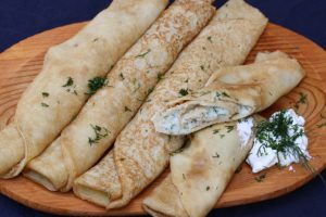 Hozzávalók: 25 dkg fejes káposzta, 1 teáskanál só, 1 evőkanál sertészsír. A töltelékhez: 25 dkg orda (vagy túró), kis csokornyi kapor, 2 evőkanál cukor. A palacsintákhoz: 25 dkg liszt, 1 tojás, 1 teáskanálnyi kristálycukor, 2 dl tej, szódavíz, 2 dl olaj, csipetnyi só.