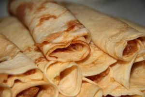 A kissé meghűlt párolt almát a palacsintákba töltjük, és már ehetjük is az ízletes desszertet.