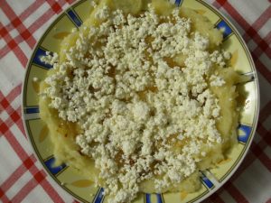 Hozzávalók: 1 kg krumpli, 50 dkg túró, só, 3 fej vöröshagyma, 1 fakanál zsír, vagy fél dl étolaj, 50-60 dkg liszt.