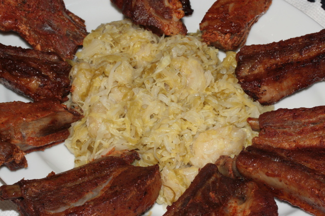 Közben a kolbászt kisebb kockákra vágjuk, és a zsírral összesütjük.