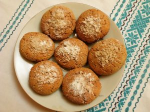 A kukoricalisztet leszitáljuk, belekeverjük a darált diót, csipetnyi sót, porcukrot, tejfölt, sertészsírt. Hozzáadjuk a szóda-és sütőport is. Összegyúrjuk, pogácsányi golyókat formálunk belőle, kicsit lelapítjuk, és kikent tepsibe tesszük. A tetejét olvasztott zsírral átkenjük, és előmelegített sütőben megsütjük.