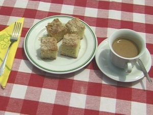 Hozzávalók: 20 dkg porcukor, 2 tojás, két dl tejföl, 20 dkg liszt, késhegynyi szódabikarbóna. A tetejére cukros darált dió. A tepsi előkészítéséhez sertészsír, kevés liszt.