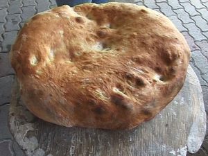 Közben (ha kemencében sütjük) kihúzzuk a parazsat, és vizes söprűvel kitisztítjuk a kemencét.