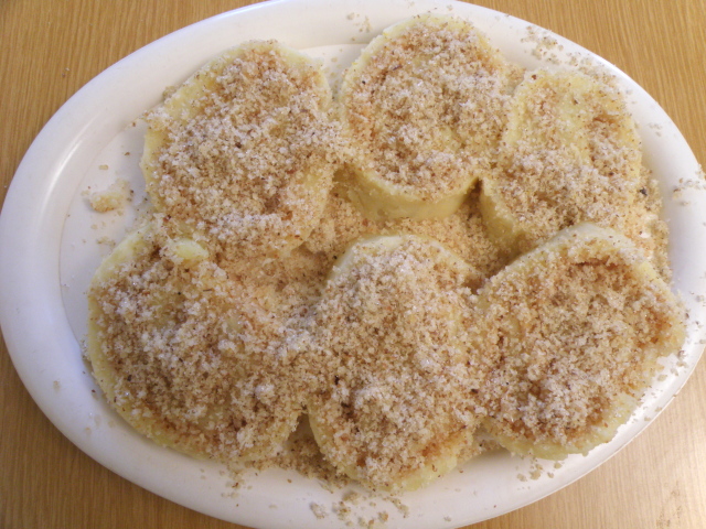 Meglisztezzük a deszkát, és vékonyra kinyújtjuk rajta a tésztát. Derelyevágóval kockákra vágjuk, közepükbe két csíkot vágunk, és forró sütőlapon, tárcsán, vagy palacsintasütőben mindkét oldalán megsütjük.