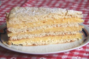Hozzávalók: 30 dkg liszt, 10 dkg margarin, 10 dkg porcukor, 1 tojás, fél csomag szalalkáli, fél dl tej. A krémhez: 1 l tej, 25 dkg cukor, 3 tojás, 3 vaníliás pudingpor.