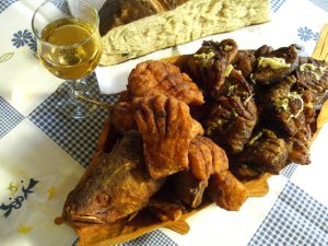 Bő zsiradékot hevítünk, és amikor már forró, a menyhal szeleteket ropogósra sütjük benne. Amikor kiszedjük a zsírból, azonnal átkenjük fokhagymás olajjal.
