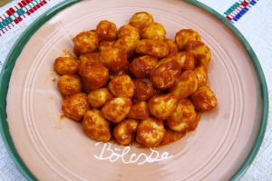 Lisztezett lapon is átgyúrjuk. Kicsit szétnyomjuk a tetejét, csíkokra vágjuk, ezeket rudakká megsodorjuk. Diónyi gombócokat készítünk belőle, amit forró, sós vízben kifőzünk, leszűrünk, és a szaftba beleforgatunk.