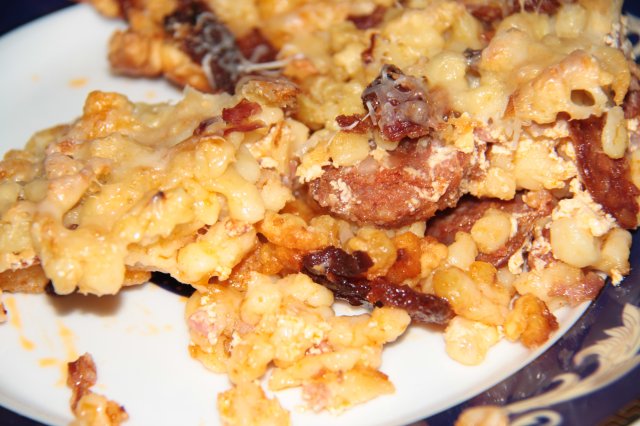 A szűzérméket libazsírban mindkét oldalukon szép színesre sütjük, és melegen tartjuk. Zsírjában ropogósra pirítjuk a felkockázott szalonnát, kiszedjük a pörcöket, majd a zsírban megkaramellizáljuk a cukrot, és kipattogtatjuk benne a köményt. Beleborítjuk a hagymacsíkokat, evőkanálnyi balzsamecettel, és egy deci olaszrizlinggel fedő alatt roppanósra pároljuk. Ízlés szerint fűszerezhetjük még sóval, borssal, cukorral.