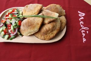 Hozzávalók: 80 dkg liszt, 5 dkg élesztő, egy evőkanál kristálycukor, 1 teáskanál só, 2 tojás, 2 evőkanál zsír, 3 dl tej. A töltelékhez: 40 dkg vaddisznó szűzpecsenye, 1 vöröshagyma, 2 gerezd fokhagyma, 8 db koktélparadicsom, 2 szál lestyán, 1 kávéskanál só, csipetnyi őrölt feketebors, fél kápia paprika, fél deci vörösbor. A kerti javakhoz: 3 koktélparadicsom, fél kápia paprika, 20 dkg uborka, kevés póréhagyma, 1 lila hagyma, csipetnyi só, 2 evőkanál olívaolaj.