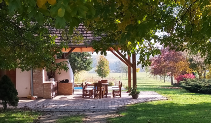 Our fabulous guesthouse is located in a quiet little village. We can accommodate a total of 14 people. Each of our rooms has a separate bathroom, and the house has a fully equipped kitchen and a spacious living room. The attic is air-conditioned. The courtyard also includes an independent community house. A swimming pool, a jacuzzi and a Finnish sauna await our guests in our wellness department. For those who prefer active recreation, there is a football field, a volleyball court and a badminton court. Parking is provided in a closed yard.