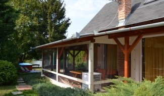 The 4+2-bed holiday house is located in Békésszentandras on the shores of the Sirató Körös backwater, directly on the waterfront. The accommodation has a jacuzzi, a Finnish sauna, a children's pool and air conditioning. On the ground floor of the two-story building, there is a living room with an American kitchen, a bathroom with toilet, sink, and shower. The house has a covered terrace. On the first floor there are 2 couches and a double bed. For our guests, the 5-person Canadian jacuzzi, which also operates in winter, has been installed under the covered terrace. The waterfront is suitable for bathing and fishing, and there is a fishing deck and a boat. In the yard, a firepit and a separate 4-person Finnish sauna building were created. In the yard, there is a children's pool, a log playground with a slide, a climbing frame, and a swing. The holiday house has a parking lot for 2 cars. Free Wi-Fi is provided.