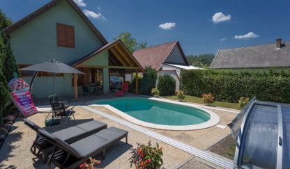Renovated in 2019, the nicely decorated and excellently equipped holiday house awaits its guests, near the fishing lake in Lipót's resort area, 500 m from the Thermal and Adventure Spa. In its garden, among other things, there is a terrace, an 18-square-meter pool, sunbeds, outdoor barbecue, parking lot, sandbox, swing, and paddling pool, providing relaxation and entertainment.