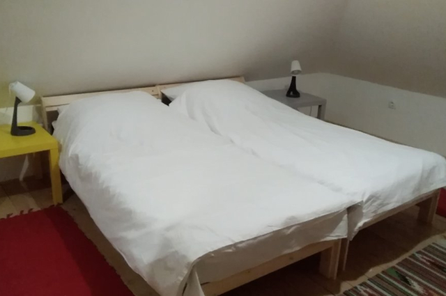 We welcome our guests In the 150-year-old, authentically renovated Zuzmó Guesthouse. On the ground floor there is a cozy lounge, a bathroom with a bathtub, a diningroom with kitchen and a bedroom with a double bed. In the attic, there are two bedrooms with four beds and one single bedroom with an extra bed, as well as a bathroom with a shower. All beds are single beds, so they can be pushed together or apart as needed.
