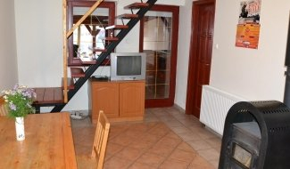 Holiday house for 7 + 2 people, which has a jacuzzi, Finnish sauna, swimming pool, air conditioning, heat-insulated-winterized awaits its guests. On the ground floor of the two-storey building there are 2 rooms, a living room with an American kitchen, 2 bathrooms with a toilet and a sink, and a Finnish sauna opening from the corridor. Towards the waterfront there is a covered, round glass-covered terrace with an equipped summer kitchen at the disposal of our guests. Upstairs, in a space with a staircase, there are 2 sofas and a twin room. We placed a 6-person Canadian Coast-Spas jacuzzi under the covered terrace in winter. 10 meters wide built-up beach with pier, boat, outdoor barbecue. In the yard there is a log playground with a slide, a climbing frame and a swing. The pool is 5x3 meters and is equipped with industrial water circulation equipment. The waterfront can be closed with a fence to protect children. Parking for 4 cars, two of which are covered. Free wifi.