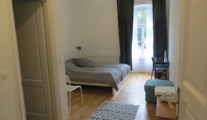 In the building of the mansion, we welcome our guests with 7 modern, country-style rooms with double beds and bathrooms. Extra beds or cots can be added to some of our rooms. In addition, the mansion features a family suite with two rooms, each equipped with a double bed, and a spacious bathroom (bathtub + shower + large sink).