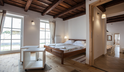 János bácsi háza is a guesthouse located in the center of Hegykő. Its renovation was completed in 2015, so despite its traditional country house character, it perfectly meets today's modern needs. The house has an apartment and a room with a shared kitchen and dining room. The apartment has two (can be opened together) rooms with 2-2 beds each (extra bed available) and a bathroom that can also be used by people with reduced mobility. The independent room, also with 2 beds (extra bed available), has its own bathroom. There is a parking lot for 4 cars in the closed yard of the house. There is also a lockable bicycle storage room. We provide 3 men's, 3 women's and 2 children's bicycles for guests.