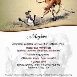 Az Országos Agarász Egyesület tisztelettel meghívja Tarcsay Béla festőművész agaras és vadászati témájú pasztellképeinek kiállítási megnyitójára 2020. július 24-én 17 órai kezdettel.