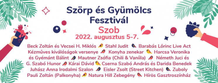 Hagyományteremtő szörp és gyümölcs fesztivál Szobon, a Dunakanyar gyönyörű környezetében. A fesztivál az ország minden tájáról érkező szörpmesterek zamatos italaival felejthetetlen élményt nyújt az ide látogatóknak. A programban szerepelnek koncertek, irodalmi előadások, kulturális programok és workshopok. Lesz látványfőzés is.