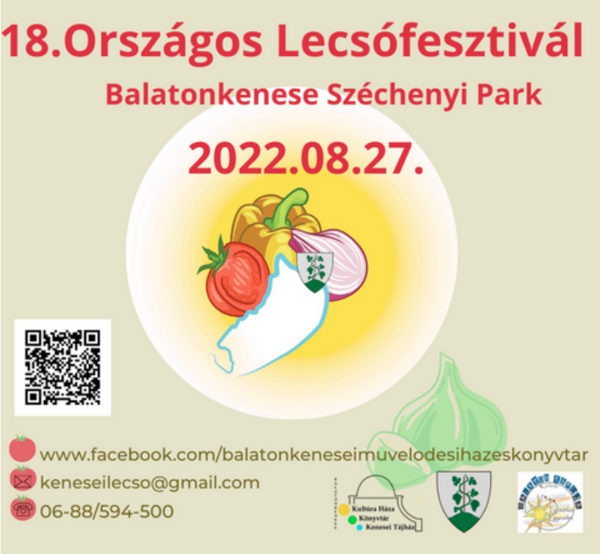 Idén lesz 18 éves Balatonkenese nyári gasztronómiai fesztiválja, az Országos Lecsófesztivál, melyet 2022. augusztus 27-én a Széchenyi parkban.