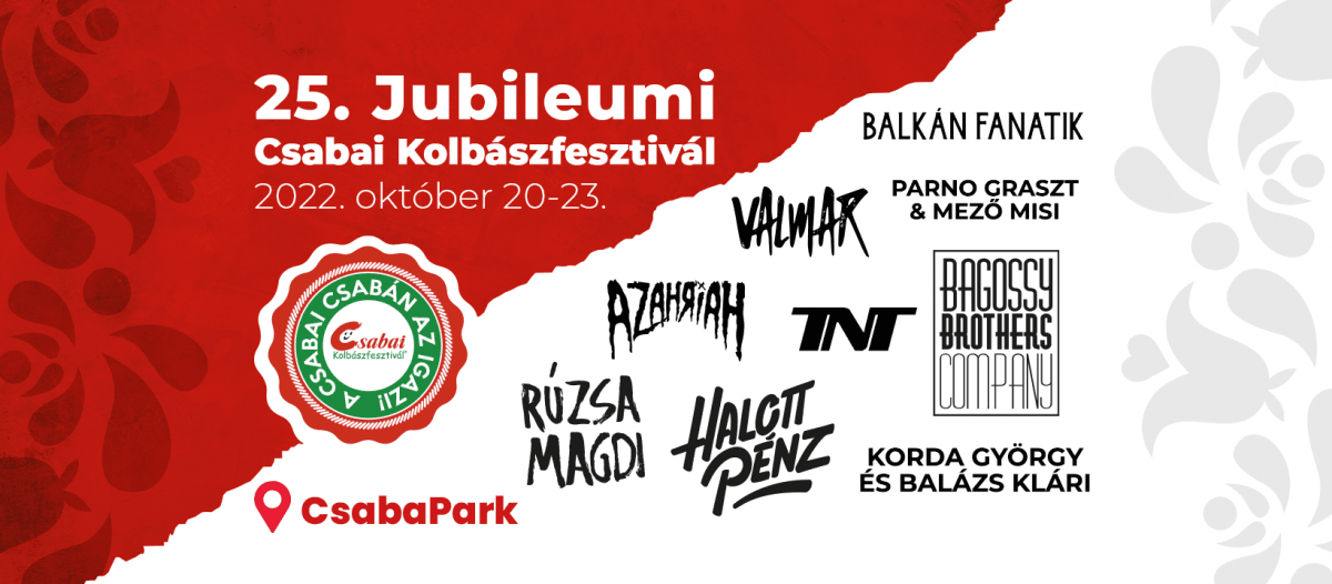 2022. október 20-23. között rendezik meg a Csabai Kolbászfesztivált 25. alkalommal Békéscsabán, amelyre már lehet asztalt is foglalni. 4 napig tartó gasztrokaland az ország legfinomabb kolbászaival, felejthetetlen élményekkel és több tucat hazai, valamint külföldi fellépővel.