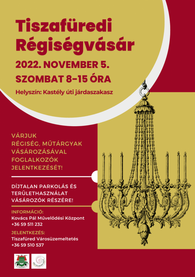 Tiszafüred Város Önkormányzata és a Kovács Pál Művelődési Központ hagyományteremtő szándékkal, minden hónap első szombatján régiségvásárt tart.