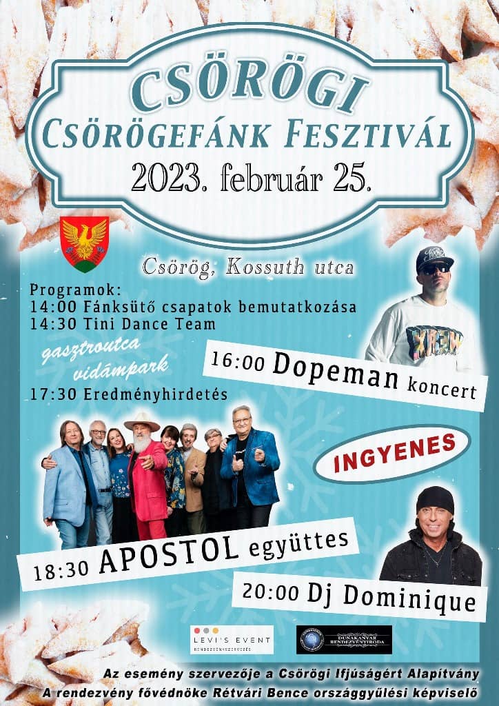 Lekvárral vagy porcukorral, hidegen vagy friss melegen, a csörögefánk mindenhogy finom. A legfinomabb fánkok pedig ez alkalommal a csörögi asszonyok kezei közül kerülnek ki. A hangulatot remek zenék és néptáncbemutató fokozza.,Lekvárral vagy porcukorral, hidegen vagy friss melegen, a csörögefánk mindenhogy finom. A legfinomabb fánkok pedig ez alkalommal a csörögi asszonyok kezei közül kerülnek ki. A hangulatot remek zenék és néptáncbemutató fokozza.