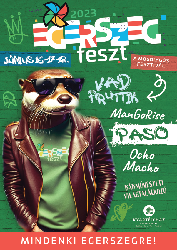 Belváros-Kertváros-Landorhegy 11:00 Kéklámpás felvonulás Dreher Nagyszínpad (Széchenyi tér) 11:30 a Készenléti Rendőrség Zenekarának koncertje 14:00 Baleseti szimuláció 17:00 Gála Társastáncklub Egyesület 20:00 ManGoRise 22:00 OCHO MACHO Tarr Fesztiválszínpad (Dísz tér) 10:00-18:00 Bábművészeti Világtalálkozó programjai 10:00 TEATR SNOW (PL) A szoba – gólyalábas- óriásbábos előadás 11:40 Harisnyás pipik interaktív gyermekműsor 16:45 Josefina Pérez Gardey (ARG): Muruya show – cirkuszi bohóc-akrobata műsor 18:45 Juan Ignacio Rey (ARG): Manic Freak show – színházi előadás cirkuszi akrobatika 20:00 Petruska 21:30 Musical és operett (Hertelendy Attila, Debrei Zsuzsanna, Bot Gábor, Foki Veronika) Európa tér 11:00 Ládafia Bábszínház: A lóvátett kupec bábelőadás 17:15 Écsi Gyöngyi (SVK): Szőlőszem Kálmán , bábos mesemondó 18.00 Nizsai Dániel (H): Pulcinella éneke kesztyűs bábjáték Kvártélyház 15:00 Griff Bábszínház Ilók, Mihók és más bolondságok (H), bábjáték 17:00 Gyermektáncház (a Pro Zalaegerszeg Kulturális Egyesület szervezésében) 19:00 Felnőtt táncház (a Zalai Táncegyüttes szervezésében) Polgármesteri Hivatal előtti tér 10:40 Théatre Pas Sage: Polichinelle – A hordó (FRA) vásári kesztyűs bábjáték 16:00 Phillip Huber (USA): Felfüggesztett animációk – bábvarieté “A helyi identitás és kohézió erősítésének megteremtése Zalaegerszegen” 12:00 órától Filmvetítések 18:00 óra “Ragadozók a közvetlen környezetünkben” – Győrvári Attila, az OMVK Zala Megyei Területi Szervezetének titkára, Zala megyei fővadász előadása Göcseji Múzeum – MUSEUMFEST 14:00 Tárlatvezetés “Az agyag életre álmodója – Németh János kerámiái” kiállításban 16:00 Tárlatvezetés az “Elődeink élete” – várostörténeti kiállításban (a tárlatvezetések a fesztiválozóknak belépőjegy megváltásával térítésmentesek.) 10:00-19:00 Utcaszínházi programok a fesztivál területén a Bábművészeti Világtalálkozó keretében (interaktív játékterek) Tekergőtér (H) Tintaló Cirkusz (H) Négy égtáj játszótér (H)Június 18. (vasárnap) – Apák napja
