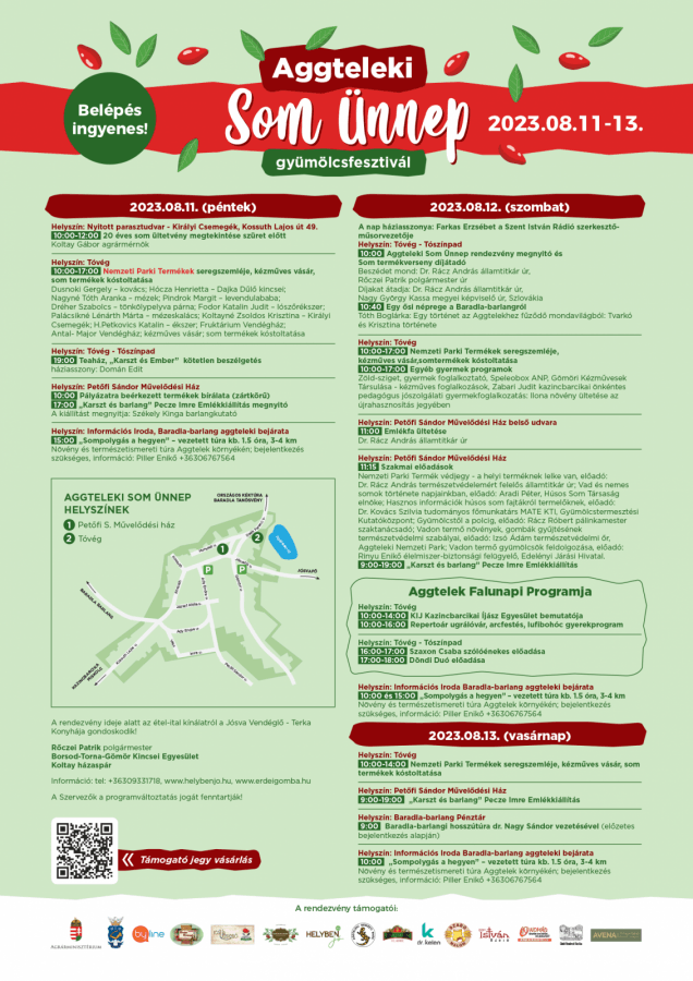 Aggteleki Som Ünnep gyümölcsfesztivál 2023. augusztus 11-13. között somtermékek versenyével, előadásokkal, kézműves vásárral, zenés és családi programokkal.,Aggteleki Som Ünnep gyümölcsfesztivál 2023. augusztus 11-13. között somtermékek versenyével, előadásokkal, kézműves vásárral, zenés és családi programokkal.,Aggteleki Som Ünnep gyümölcsfesztivál 2023. augusztus 11-13. között somtermékek versenyével, előadásokkal, kézműves vásárral, zenés és családi programokkal.,Aggteleki Som Ünnep gyümölcsfesztivál 2023. augusztus 11-13. között somtermékek versenyével, előadásokkal, kézműves vásárral, zenés és családi programokkal.,Aggteleki Som Ünnep gyümölcsfesztivál 2023. augusztus 11-13. között somtermékek versenyével, előadásokkal, kézműves vásárral, zenés és családi programokkal.
