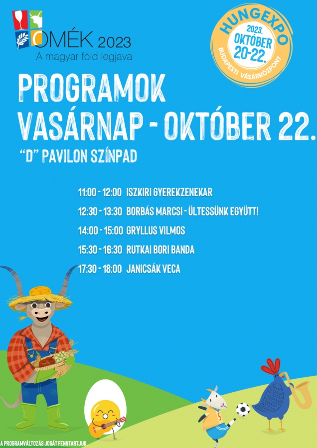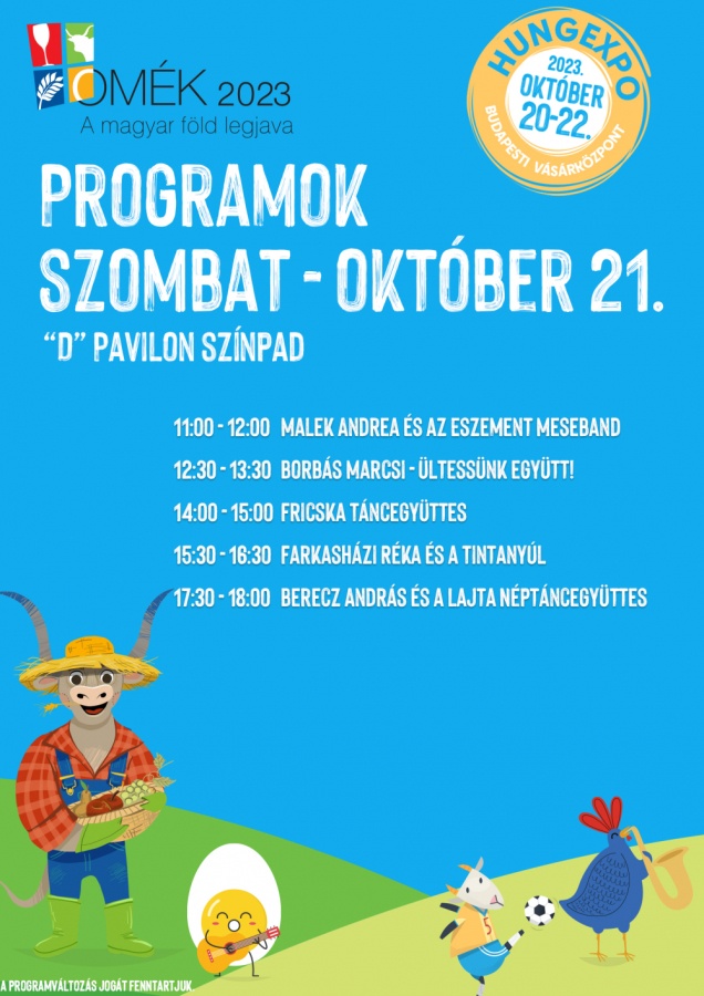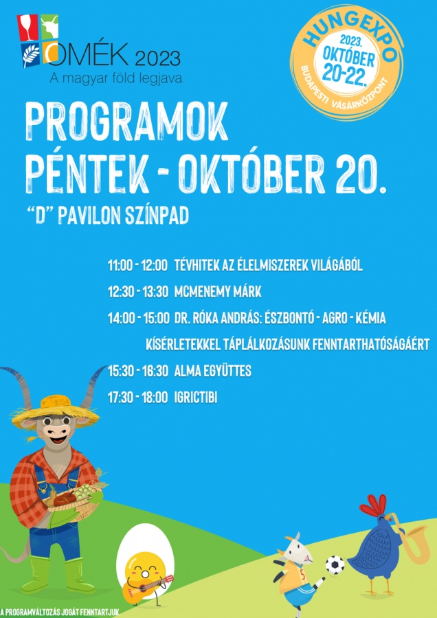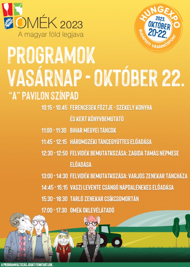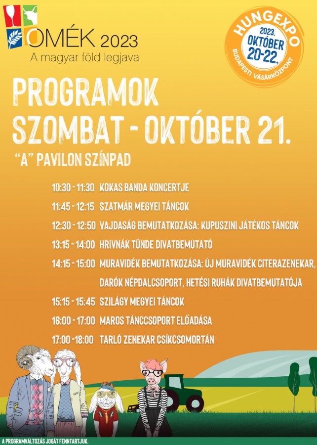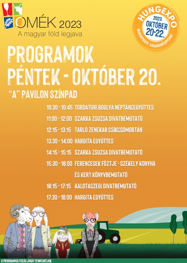 Valódi vidéki kavalkád várja a fővárosiakat és a fővárosba látogató vidékieket a HUNGEXPO Budapest Kongresszusi és Kiállítási Központ területén 2023. október 20-22. között. Az eseményt kétévente rendezi meg az Agrármarketing Centrum az Agrárminisztérium égisze alatt, célja pedig nem más, mint egy színes, családi program keretében bemutatni a hazai agrárium és élelmiszergazdaság teljes spektrumát. Az OMÉK természetesen a szakmai látogatókat is éppúgy várja, mint a nagyközönséget, hiszen kitűnő alkalom arra, hogy az agrárgazdaság jeles képviselői kapcsolatot építsenek hazai és külföldi beszerzőkkel, illetve üzleti lehetőségeket találjanak.