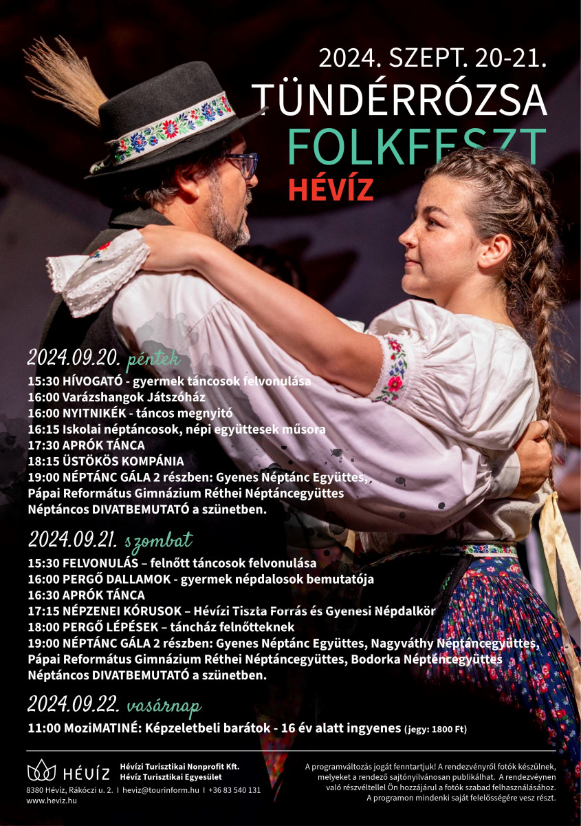 Tündérrózsa FolkFest Hévízen 2024. szeptember 20-21-én. Vidám, táncos, zenés program népzenével, néptáncgálával, kézműves kirakodóvásárral!