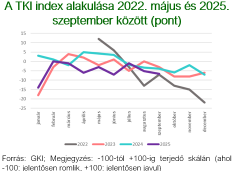 A TKI index 2025. szeptemberben -7 ponton állt (-100 és +100 közötti skálán értelmezve), mely azt jelenti, hogy az ágazat szereplői helyzetüket negatívnak érzékelték.