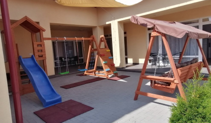 Egyéb jellemzők: nyitott parkoló,játszótér,saját parkoló