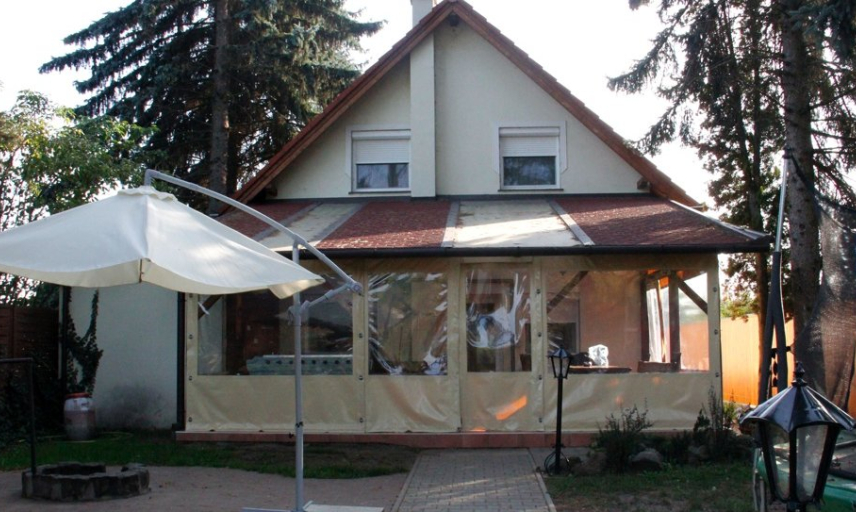 15 férőhelyes pótágyazható nyaraló, igényesen felszerelt és berendezett légkondicionált, központi fűtéses vízteres kandallóval fűthető hőszigetelt, téliesített, közvetlen vízparti nyaraló. Földszinten nappali, konyha, fürdőszoba és egy ötágyas családi szoba, saját klímaberendezéssel és fürdőszobával. Emeleten négy szoba, melyből kettő franciaágyas, kettőben pedig 3-3 heverő. Az épület előtt fedett, körben üvegponyvázott fűthető terasz nyári konyhával és a teraszról nyíló finn szaunával. Udvaron napkollektorral fűtött medence, polikarbonát thermotetővel ellátva. A kényelmet szolgálja a vízparti pagodában elhelyezett nyolc személyes Canadai Coast- Spas jacuzzi. Gyerekek számára rönkfajátszótér, trambulin, csocsóasztal. Vízpart felől kialakított bográcsozó. 12 méter széles kiépített, gyerekek védelmében kerítéssel ellátott vízpart, melyhez tartozik csónak, vízibicikli, fedett horgászkiülő asztallal, padokkal, parti világítás. Négy személyautó részére zárt parkoló.