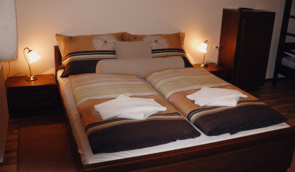 Vendégházunkban 16 főt főágyon, 7 főt állandó férőhelyen/pótágyon, összesen 23 főt tudunk elhelyezni. Az egész évben működő Főépületben külön bejáratú és igényesen kialakított apartmanokkal állunk a vendégeink rendelkezésére. Öt apartmant alakítottunk ki, melyek 2, 4 és 5 férőhelyesek.