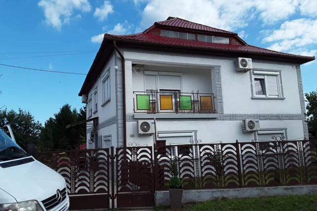 A vendégház 6 fő befogadására alkalmas, 100 m2 hasznos alapterületű. Az első szinten egy franciaágyas hálószoba található, különálló wc-vel, tágas nagy nappali étkező résszel, teljesen felszerelt konyhával. A felső szinten 2 db franciaágyas hálószoba, galéria és fürdőszoba található. A vendégház első szintjéhez nagy nyitott terasz tartozik.