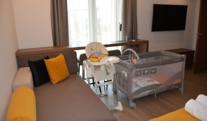 Egyéb jellemzők: játszószoba,parkolás zárt udvarban,légkondícionáló berendezés az egész épületben,társasjátékok,etetőszék,játszótér