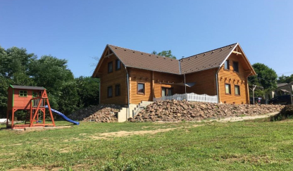A Rönkház Vendégházban Zselicszentpálon, gyönyörű természeti környezetben várjuk vendégeinket. A négy napraforgós minősítésű vendégház fenyő rönkből készült, kívül belül meghagytuk a fa szépségét, a burkolásokat is igyekeztünk fából elkészíteni, de mégis modern stílusban megépítve egy család vagy egy baráti társaság részére. Minden megtalálható a házban és az udvaron egyaránt, ami egy kellemes, kikapcsolódást nyújtó nyaralás, vagy hétvége eltöltéséhez szükséges lehet. Az inkább passzív pihenésre vágyóknak ajánljuk wellness részlegünket, ahol jakuzzi, szauna és pihenőfotelek találhatóak. Az emeleten kaptak helyet a szobák, ahol az ágyak úgyszintén rönkből készültek, mint a falak. A szobákhoz külön fürdőszobák tartoznak. A nagyobbik szobában 2 db 1 személyes és 1 db kétszemélyes rönkágy található, de pótágyazásra is van lehetőség. A kisebbik szobában 3 főt tudunk elszállásolni. A teraszon hordókból készült egyedi ülőgarnitúra került kialakításra. A gyermekeket pedig az udvarban játszótér, focipálya és tollaslabda háló várja. Az udvaron továbbá készítettünk egy konyhakertet, ahol mindenki kedvére kertészkedhet. A vendégek számára WIFI kapcsolat és parkolási lehetőség zárt udvarban biztosított. SZÉP kártyát elfogadunk.