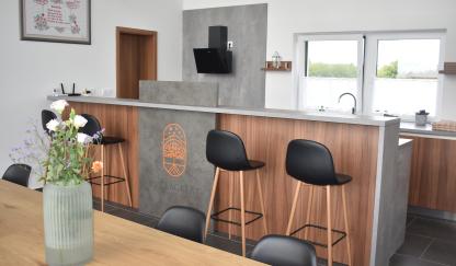 A település peremén, a természethez közel, Somlói kilátással hoztuk létre vendégházunkat. Legmodernebb technológiával készült, stílusában letisztult, igényes, barátságos hangulatú, minden komforttal ellátott. Három szobával várjuk vendégeinket, melyek tágasak és világosak. Jól felszerelt konyha és vizesblokkok állnak a minket választók rendelkezésére.
