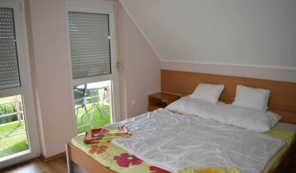 A vendégház 2009-ben épült tetőteres építésű nyaralóépület, új berendezésekkel, és többnyire új bútorokkal. A gyógyforrástól 800 m-re helyezkedik el. Az épület 12 vendég kényelmes elhelyezését biztosítja. Az épületben 5 db kétágyas szoba, 2 db fürdőszoba, tágas nappali, jól felszerelt konyha, előszoba és lépcsőház található. Televíziózásra, biliárdozásra is van lehetősége a kikapcsolódni vágyóknak. A házhoz hatalmas terasz tartozik, amely napozásra, pihenésre alkalmas.